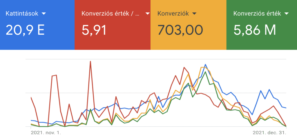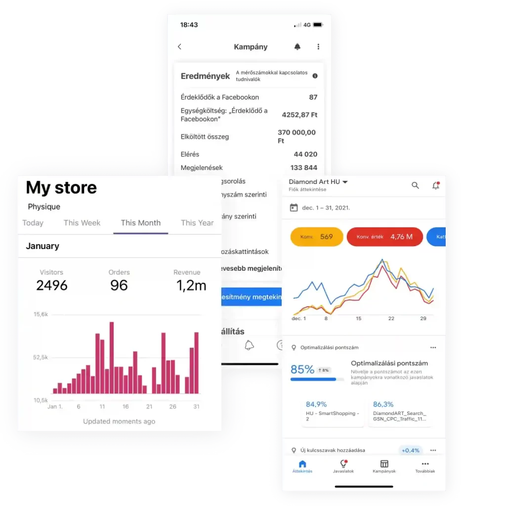 Kis webáruház tulajdonosaként kiemelten fontos volt a számomra, hogy lássam mire költöm el a pénzemet és mérhető legyen az eredmény. Hát azt kell, hogy mondjam: több, mint elégedett vagyok! Köszönöm Kristófnak a munkáját és azt, hogy még szenteste is válaszolt nekem az üzenetemre. Még a tavalyi karácsonyi szezonhoz képest is több, mint 10x-es bevételt könyvelhettem el, amit elképzelhetetlen lett volna véghezvinnem a munkátok nélkül.